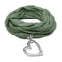 Sciarpa gioiello ciondolo cuore irregolare. Colore kaki. Tessuto in jersey. Realizzato a mano in alluminio 100% riciclato. Nickel tested. Lavorazione artigianale. Gioielli fatti a mano, unici e artigianali, perfetti per tutti i tuoi look o come idea regalo.