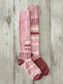 Aggiungi un tocco giocoso e unico al tuo outfit con questi calzini al ginocchio spaiati in morbido cotone. Il design combina due fantasie coordinate: righe geometriche e motivo pied de poule, in delicate sfumature di rosa e bordeaux. Realizzati per offrire comfort e stile, sono perfetti per chi ama distinguersi con dettagli originali. Ideali per look casual, urban o per dare personalità a un outfit classico.