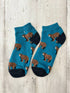 Comodi e originali, questi calzini raffigurano simpatici orsi marroni su sfondo turchese. Il design divertente e naturale li rende perfetti per aggiungere un tocco unico al tuo look quotidiano. Le punte e i talloni in nero creano un piacevole contrasto che valorizza il motivo. Realizzati in morbido cotone elasticizzato, garantiscono comfort e traspirabilità per tutto il giorno, ideali per chi ama accessori pratici ma con personalità.