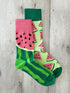 Porta l’estate sempre con te grazie a questi calzini spaiati a tema anguria, allegri e super originali! Un calzino riproduce la buccia verde e la polpa rosa dell’anguria, mentre l’altro è decorato con tante fette colorate, perfette per dare un tocco fresco e divertente al tuo look.