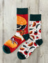 Esprimi la tua passione per il buon cibo con questi calzini spaiati colorati e divertenti! Un calzino è decorato con pomodori rossi succosi e foglie di basilico, mentre l’altro raffigura un gustoso hamburger in stile cartoon.