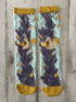 Questi calzini trasparenti con foglie ricamate sono un accessorio originale e raffinato, perfetto per dare un tocco di stile ai tuoi outfit. Il design con foglie verde acqua e viola, arricchito da piccoli dettagli gialli, crea un contrasto vivace e moderno. Realizzati in tessuto leggero e traspirante, offrono comfort e vestibilità elegante. Punta, tallone e bordo in giallo senape aggiungono stabilità e resistenza senza rinunciare al design ricercato. Ideali da abbinare a scarpe basse, mocassini o sandali per esaltare i ricami e rendere unico il tuo look quotidiano.