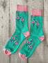 Calzini colorati con fenicotteri rosa, perfetti per chi ama distinguersi con stile e allegria. Il design vivace unisce una base verde brillante a dettagli rosa su punta, tallone ed elastico, creando un contrasto unico e accattivante. Realizzati in morbido cotone traspirante, garantiscono comfort durante tutta la giornata. La fantasia con fenicotteri rende questi calzini un accessorio divertente e originale, ideale per regalare un tocco tropicale al tuo outfit quotidiano. Ottimi come idea regalo simpatica e di tendenza, adatti a ogni stagione e occasione.