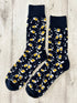 Calzini divertenti con fantasia di boccali di birra, perfetti per chi ama accessori originali e giocosi. La base nera elegante è decorata con piccoli boccali di birra gialla con schiuma bianca e bollicine, creando un design allegro e vivace. Realizzati in morbido cotone traspirante, garantiscono comfort durante tutta la giornata. Ideali come idea regalo simpatica per amici e amanti della birra, questi calzini sono perfetti per aggiungere un tocco ironico e colorato al tuo outfit quotidiano.