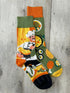 Porta allegria e originalità ai tuoi piedi con questi calzini spaiati unisex a tema cucina! Un calzino raffigura un simpatico chef con padella e piatti colorati, mentre l’altro è decorato con vivaci illustrazioni di cibo come pizza, hamburger, pollo, uova e verdure. I toni allegri di verde, arancione e giallo rendono questo accessorio perfetto per chi ama cucinare o per chi cerca un dettaglio ironico e fuori dal comune.
