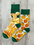 Freschi, allegri e super colorati, i calzini spaiati agrumi portano tutta l’energia della frutta estiva direttamente ai tuoi piedi. Un calzino è decorato con tante arance intere su sfondo chiaro, mentre l’altro raffigura una gustosa spremuta con fette e succo frizzante. Realizzati in cotone morbido ed elasticizzato, garantiscono comfort e traspirabilità per tutta la giornata. Lo stile spaiato li rende perfetti per chi ama distinguersi con un tocco di originalità e vivacità.
