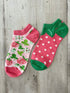 Un’esplosione di freschezza e allegria per i tuoi piedi. Questi calzini spaiati celebrano la dolcezza delle fragole con un design giocoso e colorato. Un calzino è decorato con fragoline e foglioline verdi su sfondo rosa, l’altro richiama l’aspetto del frutto con pois bianchi su base rosa e dettagli verdi. Realizzati in morbido cotone elasticizzato, offrono comfort e sono perfetti per dare un tocco originale al tuo look quotidiano. Ideali per chi ama distinguersi con stile fruttato e divertente.
