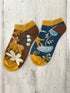 Dona un tocco originale e divertente al tuo look con questi calzini spaiati a tema bosco. Realizzati in morbido cotone elasticizzato, uniscono comfort e fantasia in un design unico. Ogni calzino racconta una piccola storia: cervi e cerbiatti tra fiori, foglie e piante dai colori naturali. Le tonalità calde del marrone, del blu petrolio e del giallo senape si combinano perfettamente per creare uno stile vivace e raffinato. Ideali per chi ama distinguersi con dettagli originali e non convenzionali, mantenendo sempre il massimo della comodità.