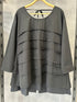 Maglia nera a maniche lunghe con dettagli a fasce orizzontali. Realizzata in morbido tessuto leggero e confortevole, presenta una linea ampia e fluida che valorizza ogni silhouette. Il design è caratterizzato da tagli decorativi a livelli che donano movimento al capo senza appesantirlo. Sul retro, uno scollo rotondo con laccetto da annodare aggiunge un tocco femminile e moderno. Perfetta per un look casual-chic, da abbinare a pantaloni aderenti o gonne morbide per un outfit elegante e rilassato.