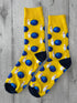 Calzini colorati con fantasia di bowling, perfetti per chi ama questo sport o cerca accessori divertenti e originali. La base gialla vivace è decorata con palle da bowling blu e birilli bianchi, mentre punta, tallone ed elastico in blu scuro aggiungono un tocco di contrasto deciso. Realizzati in morbido cotone traspirante, offrono comfort durante tutta la giornata. Ideali come idea regalo per appassionati di bowling o per chi vuole un look giocoso e sportivo, questi calzini uniscono qualità, comodità e stile unico.
