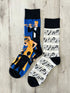Calzini spaiati divertenti e originali con fantasie musicali: un lato decorato con spartito e note in bianco e nero, l’altro con musicisti e strumenti in un’orchestra colorata. Realizzati in cotone morbido e traspirante, offrono comfort per l’uso quotidiano. Perfetti per musicisti, appassionati di musica e per chi vuole distinguersi con accessori unici, questi calzini spaiati sono anche un’idea regalo creativa e simpatica.