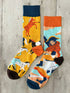 Dai energia e carattere al tuo stile con questi calzini spaiati a tema cavalli. Un calzino raffigura un cavaliere in abiti storici su un maestoso destriero, mentre l’altro mostra un vivace pattern di cavalli in movimento su sfondo giallo. I colori accesi – azzurro, arancione, giallo e blu – donano un look allegro e dinamico, perfetto per chi ama l’equitazione, la natura o i dettagli originali.