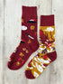 Calzini spaiati unici e colorati con fantasie ispirate alla cultura orientale: un lato con un drago rosso avvolto tra nuvole su sfondo oro, l’altro con simboli giapponesi, katana, templi e dettagli rossi su fondo bordeaux. Realizzati in cotone morbido e traspirante, offrono comfort e resistenza per l’uso quotidiano. Perfetti per chi ama accessori originali e ricchi di significato, questi calzini spaiati sono anche una splendida idea regalo per appassionati di cultura giapponese e amanti dello stile fuori dal comune.