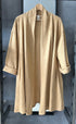 Cardigan donna lungo in tessuto morbido color cammello, perfetto per aggiungere un tocco elegante e avvolgente a qualsiasi outfit. Il design aperto senza bottoni offre una vestibilità fluida e confortevole, mentre le maniche con risvolto donano un dettaglio moderno e casual. La linea ampia e scivolata valorizza ogni silhouette, rendendolo ideale da indossare sopra maglie, camicie o abiti per creare look versatili e raffinati. Perfetto per la mezza stagione e per completare outfit quotidiani o più ricercati con uno stile minimal e sofisticato.