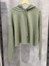 Felpa cropped con cappuccio in tonalità verde salvia, dal design minimal e moderno. Realizzata in morbido cotone elasticizzato, offre una vestibilità comoda e rilassata grazie alle spalle scese e alla linea leggermente ampia. Il fondo tagliato a vivo aggiunge un tocco casual e contemporaneo, perfetto per look streetwear o athleisure. Dotata di coulisse regolabile sul cappuccio, questa felpa è ideale per outfit quotidiani all’insegna del comfort e dello stile essenziale.