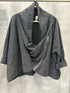 Giacca grigio scuro con zip diagonale e ampio collo drappeggiato. Realizzato in tessuto morbido e leggermente elasticizzato con delicata trama a righe sottili, offre una vestibilità comoda e moderna. Il design asimmetrico e le maniche ampie con risvolto aggiungono un tocco contemporaneo e sofisticato. Perfetto per completare look casual o eleganti, si abbina facilmente a pantaloni, jeans o gonne per uno stile unico e ricercato.