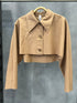 Giacca corta donna dal taglio moderno e minimalista, realizzata in tessuto morbido e caldo effetto lana. Caratterizzata da una linea boxy e da un design cropped che valorizza la silhouette, presenta colletto classico e chiusura frontale con grandi bottoni tono su tono. Le maniche lunghe e ampie donano un tocco contemporaneo e confortevole. Perfetta per completare look eleganti o casual chic, si abbina facilmente a pantaloni a vita alta, gonne o abiti per uno stile sofisticato e versatile adatto a ogni occasione.