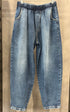 Jeans a gamba ampia con vita elasticizzata e tasche laterali. Realizzato in denim di cotone morbido e resistente, presenta un lavaggio medio con leggere sfumature effetto vissuto. La linea morbida e leggermente balloon garantisce comfort e libertà di movimento, mentre il fondo con elastico dona un tocco moderno e casual. Perfetto per look quotidiani, si abbina facilmente a maglie oversize, camicie o giacche per uno stile contemporaneo e rilassato.