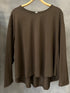 Maglia basic a maniche lunghe in cotone morbido. Il design presenta una linea ampia e fluida con taglio leggermente più lungo sul retro per un effetto morbido e confortevole. Sul retro, un delicato arriccio sotto il carré dona movimento e femminilità al capo. Perfetta per un look casual e rilassato, è ideale da indossare con jeans o pantaloni slim per un equilibrio tra semplicità e stile. Un capo essenziale e versatile, adatto a tutte le stagioni.