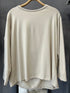 Maglia oversize beige dal design essenziale e contemporaneo, pensata per chi ama i capi comodi ma raffinati. Realizzata in tessuto morbido e leggero, offre una vestibilità fluida e rilassata che si adatta a ogni silhouette. Lo scollo tondo con bordo rifinito e le maniche lunghe cadenti donano un look minimal chic, perfetto sia per outfit casual che per combinazioni più sofisticate. Il retro è caratterizzato da cuciture orizzontali che creano movimento e struttura. Facile da abbinare a jeans, pantaloni morbidi o gonne midi per uno stile versatile e senza tempo.