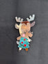 Spilla natalizia a forma di renna con vestito ad albero di Natale. Realizzata in resina lucida dai toni caldi, presenta dettagli curati come le corna traslucide, le guance rosate e le decorazioni rosse sull’abito verde brillante. Perfetta per aggiungere un tocco festivo e allegro a giacche, maglioni o sciarpe durante le feste. Un accessorio originale e colorato, ideale come piccolo regalo natalizio o per completare un outfit a tema con stile.